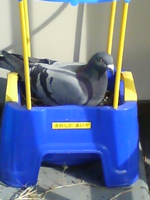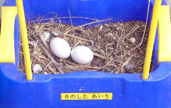 先日、あいりちゃんが使っていた植木鉢に鳩が巣を作り、卵を産みましたという心温まるお知らせがありました。